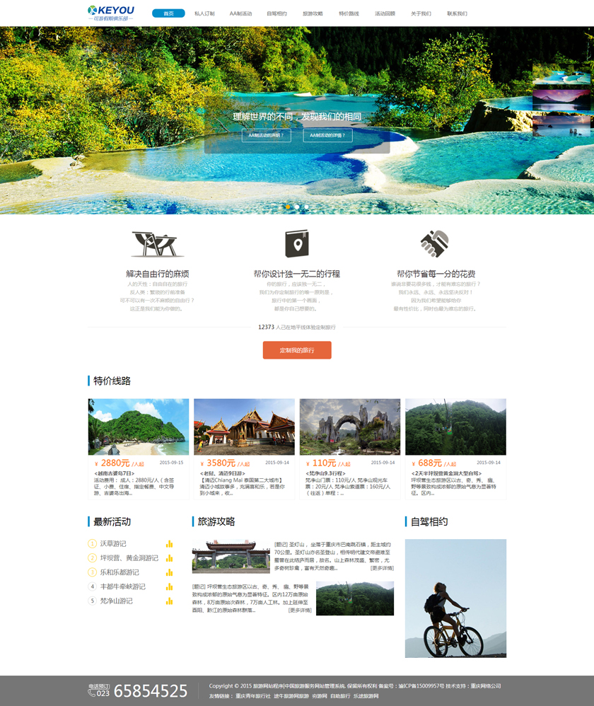 Project Description 6人游旅行网隶属于北京六人游国际旅行社有限公司。打造“为爱出行”:专为家庭,朋友,情侣间的旅行,提供私家小团精品游。打造高品质的旅行产品,解决传统跟团游和自由行存在的问题,将旅行服务做到臻善臻美。 Official website address 阿克苏http://www.keyoujq.com I want to share